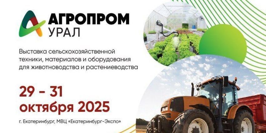 29-31 октября 2025 в МВЦ «Екатеринбург-Экспо» пройдет XIII Межрегиональная агропромышленная выставка УФО и Агропром Урал – международная выставка сельскохозяйственной техники, материалов и оборудования для животноводства и растениеводства.